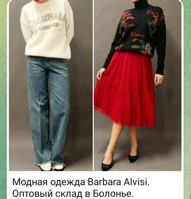 Модная итальянская одежда среднего уровня Barbara Alvisi из Италии, со склада от фабрики в Болонье в Center Gross Bologna оптом. Дистанционные закупки одежды Barbara Alvisi