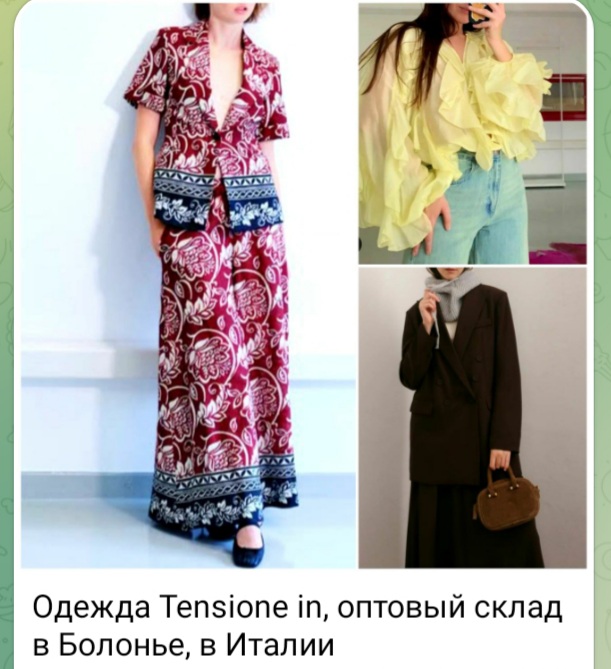 Услуги оптовых байеров по одежде в Италии, в Болонье. Купить одежду Tensione In на оптовом складе от фабрики в Италии, в Болонье, в Centergross - это с нами! Подробная информация об оптовых складах в Болонье находится здесь.